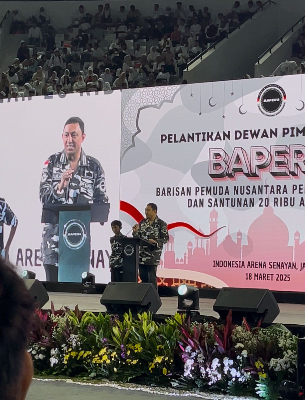 Untuk diketahui bersama, adapun Ketua Umum Barisan Pemuda Nusantara (Bapera), Fahd Elfouz Arafiq melantik pengurus Dewan Pimpinan Pusat (DPP) Bapera untuk masa bhakti 2025-2030 di Indonesia Arena, Senayan Jakarta, Selasa (18/3/2025).