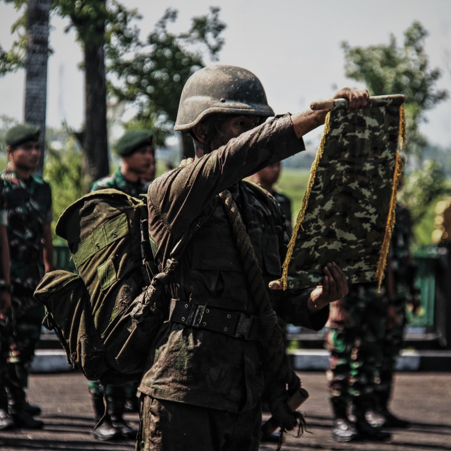 Sukoharjo – Kakorum Yonif 413/Bremoro, Lettu Inf Juanda, memimpin upacara tradisi penerimaan Bintara Remaja (Baja) di Lapangan Hitam Mayonif 413/Bremoro, Mojolaban, Sukoharjo, pada Rabu (30/10/2024).