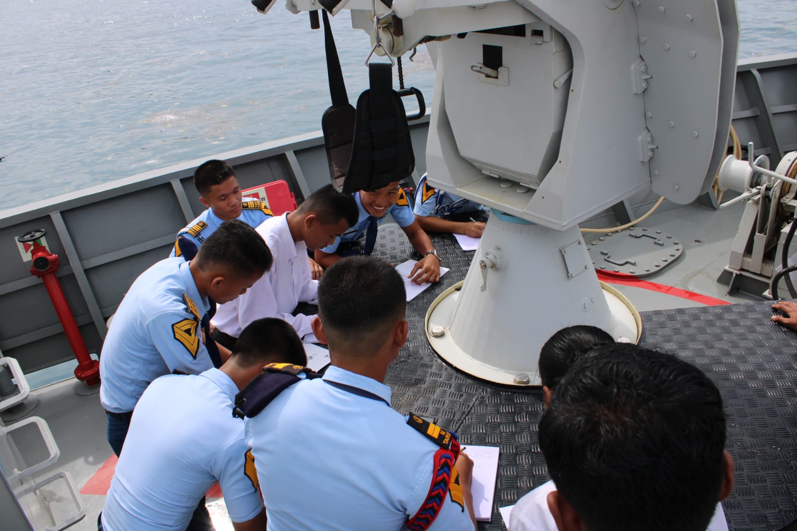 Siswa-Siswi SMA Taruna Hang Tuah berkeliling keseluruh bagian kapal, dari haluan sampai buritan sambil menerima penjelasan dari prajurit KAL Hinako tentang fungsi peralatan dan operasional persenjataan yang ada.