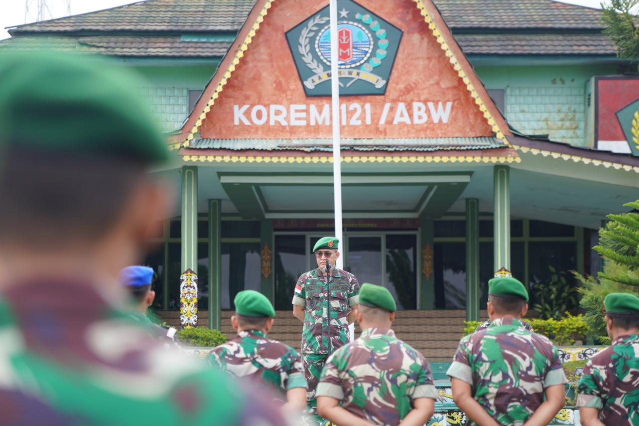 Dalam kegiatan tersebut, Danrem 121/Abw melalui Kasrem 121/Abw menyampaikan, atas nama Danrem, pribadi dan keluarga mengucapkan selamat hari raya Idul Firti 1444 H/2023 M bagi prajurit dan PNS yang merayakannya, Minal Aidzin Wal Faidzin mohon maaf lahir dan bathin.