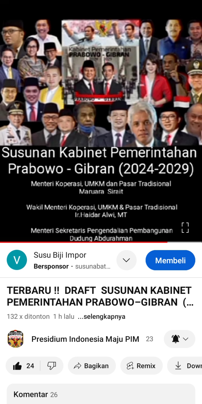 Adapun nama-nama yang tersebar tersebut konon berpeluang besar menjadi menteri dan Wamen di kabinet pemerintahan Prabowo Subianto – Gibran Rakabuming Raka.