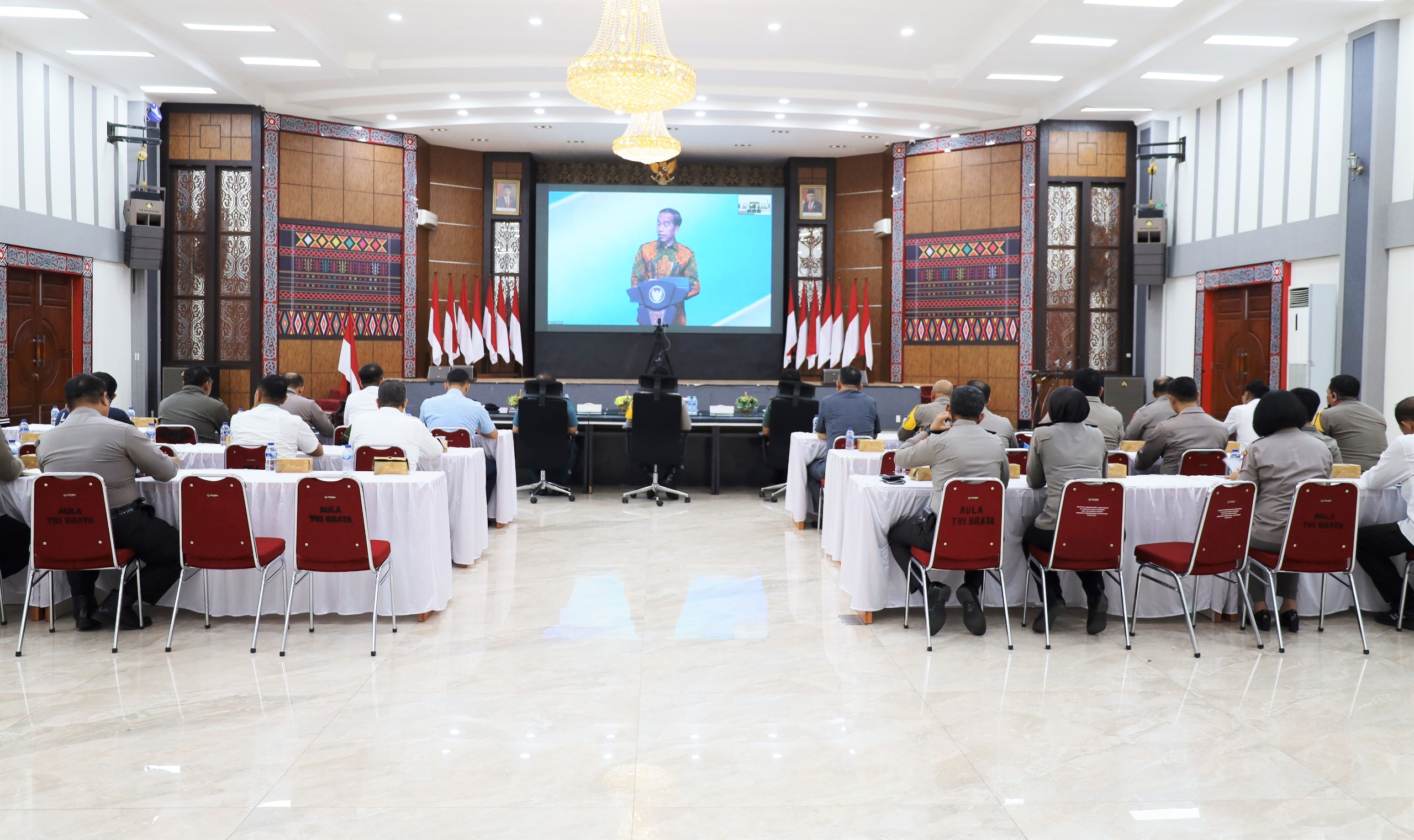 MetropolitanPost.id – Komandan Pangkalan Utama TNI Angkatan Laut I (Danlantamal I) Brigjen TNI (Mar) Jasiman Purba, S.E., CHRMP., yang diwakili Wadan Lantamal I Kolonel Laut (P) Siswo Widodo, S.T., beserta Forkopimda Sumatera Utara menghadiri Grand Launching Aplikasi Pelayanan Perizinan Event yang diresmikan oleh Presiden Republik Indonesia Ir. H. Joko Widodo melalui vicon, bertempat di Ruang Vicon Mapolda Sumut, Jalan Sisingamangaraja, Medan, Sumatera Utara, Senin (24/6/2024).