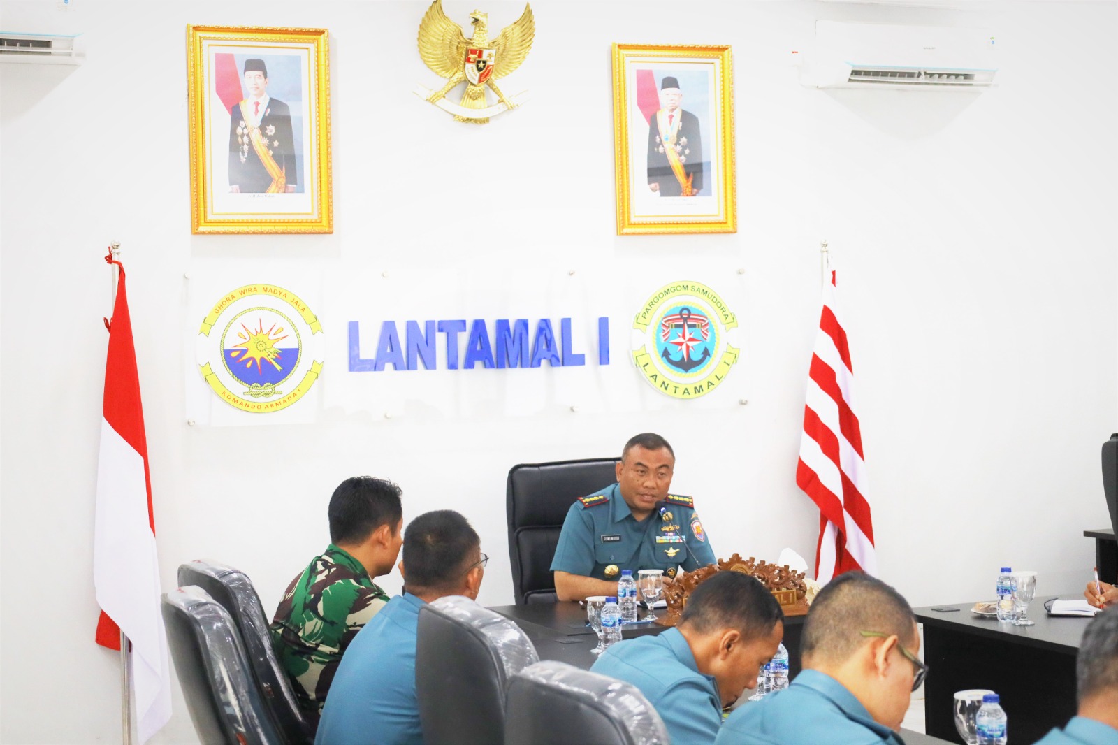 MetropolitanPost.id – Komandan Pangkalan Utama TNI Angkatan Laut I (Danlantamal I) Brigjen TNI (Mar) Jasiman Purba, S.E., CHRMP., diwakili Wadan Lantamal I Kolonel Laut (P) Siswo Widodo, S.T,. memimpin Rapat Staf Lantamal I, bertempat di Ruang Rapat Mako Lantamal I, Jalan Serma Hanafiah No. 01 Belawan, Sumatera Utara, Kamis (18/4/2024).
