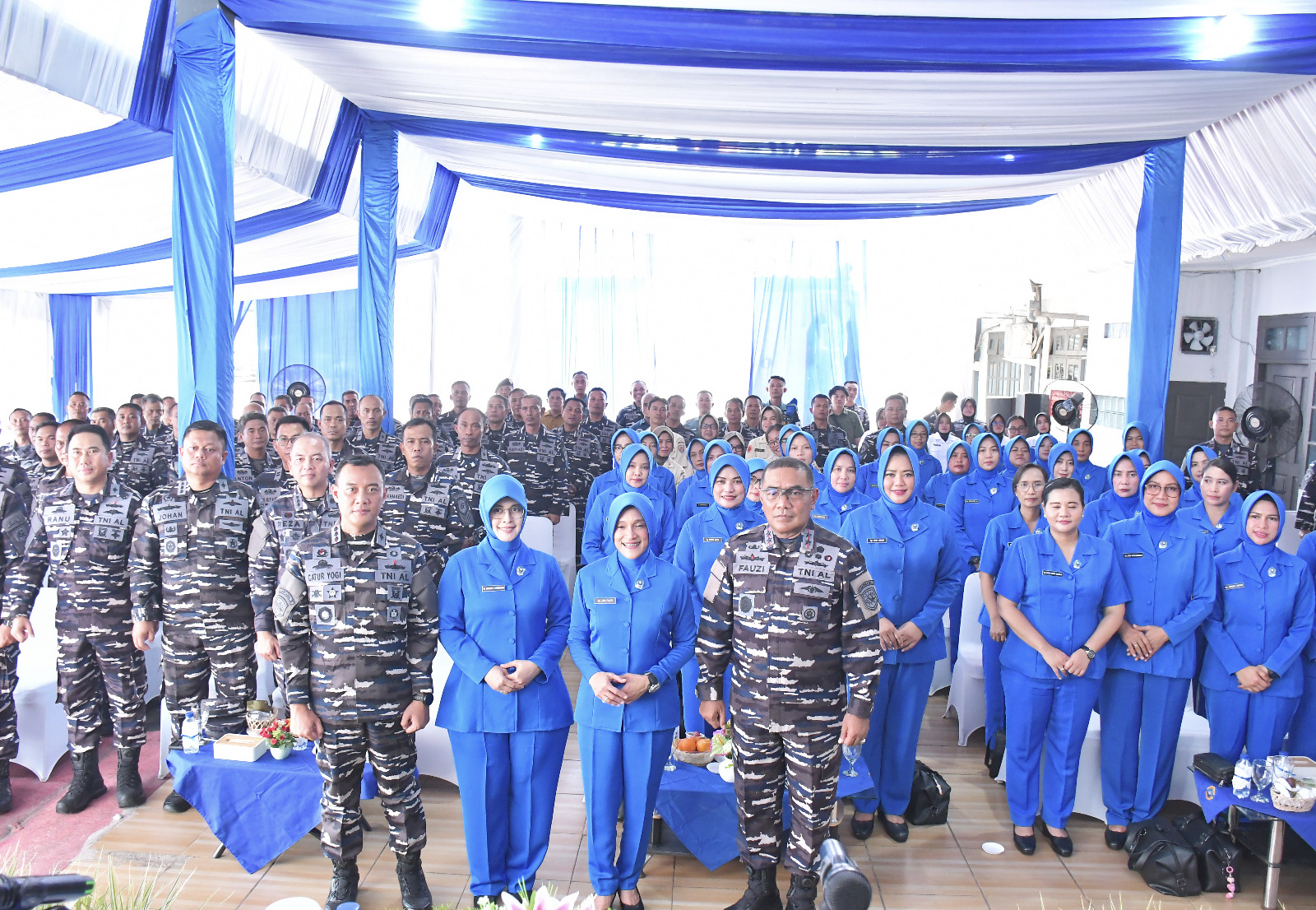 TNI AL-Dispenlantamal3. Komandan Pangkalan Utama TNI Angkatan Laut (Danlantamal) III Jakarta Brigjen TNI (Mar) Harry Indarto, S.E., M.M. diwakili oleh Wakil Komandan (Wadan) Lantamal III Jakarta Kolonel Laut (P) Ranu Samiaji, S.T., M.H., M.Tr.Opsla. dan Wakil Ketua Koordinator Cabang (Korcab) Daerah Jalasenastri Armada (DJA) I Ny. Sisca Ranu Samiaji mendampingi kunjungan kerja dan tatap muka dengan Panglima Komando Armada (Pangkoarmada) I Laksda TNI Fauzi, S.E., M.M., M.Tr.Opsla., M.Han. dan Ketua DJA I Ny. Juni Fauzi dengan prajurit dan Pegawai Negeri Sipil (PNS) di lingkungan Lanal Banten, bertempat di Mako Lanal Banten, Kamis (10/04/2025).
