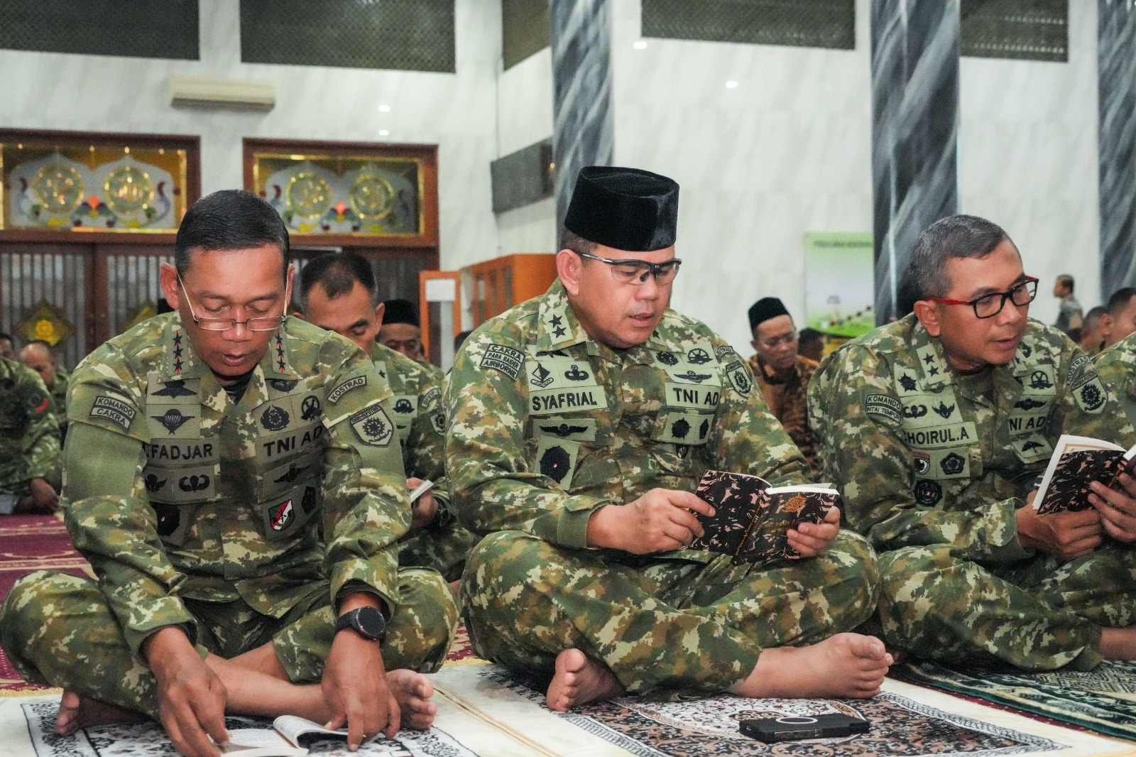 Jakarta. Dalam rangka memperingati Hari Ulang Tahun (HUT) ke-64 Komando Strategis Angkatan Darat (Kostrad), warga Makostrad menggelar acara doa bersama yang berlangsung khidmat di Masjid Asy-Syuhada, Gambir, Markas Kostrad. Jumat (28/2/2025).