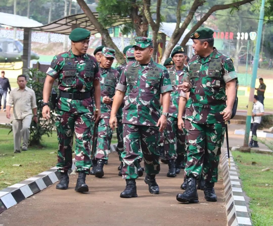 MetropolitanPost id – Kepala Staf Angkatan Darat (Kasad) Jenderal TNI Dr. Dudung Abdurachman meninjau sekaligus memeriksa kesiapan operasi Yonif Para Raider 330/Tri Darma/17/1/Kostrad yang akan bertugas di Papua, bertempat di Aula Syarifudin Yonif PR 330/Tri Dharma, Nagreg, Kabupaten Bandung, Jawa Barat, Kamis (11/5/2023).