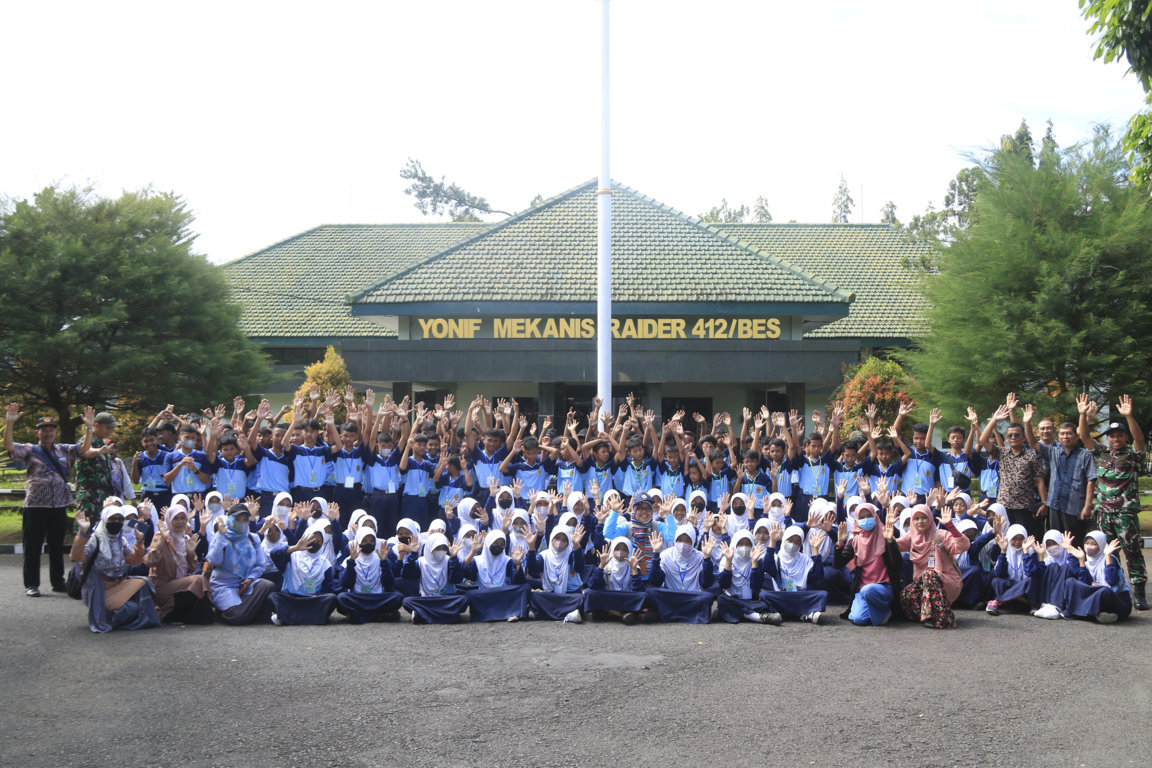 MetropolitanPost.id – Sebanyak 135 siswa dan 10 guru pembimbing SMPN 40 Purworejo tiba di Mayonif Mekanis Raider 412/BES/6/2 Kostrad dalam rangka Study Wisata dalam kegiatan sekolah yang telah menjadi program kegiatan sekolah tersebut. Sabtu (10/12/22).