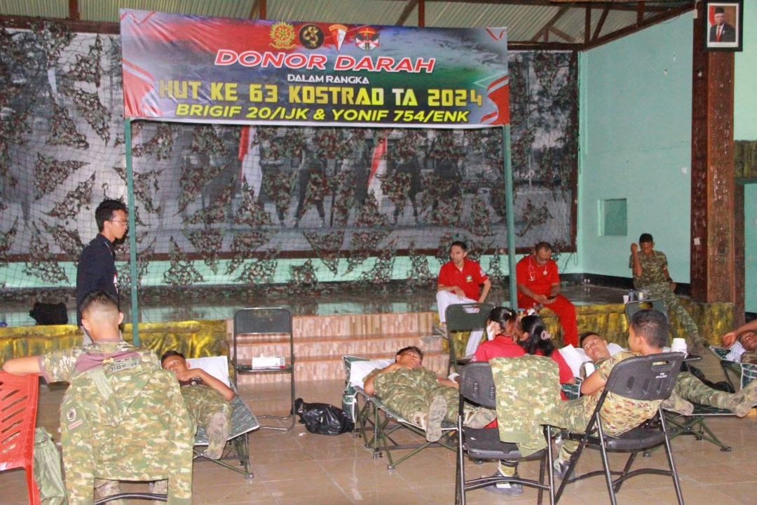 Wujud Kepedulian dengan Sesama dan Menyambut HUT ke-63 Kostrad, Yonif 754 Kostrad Gelar Donor Darah