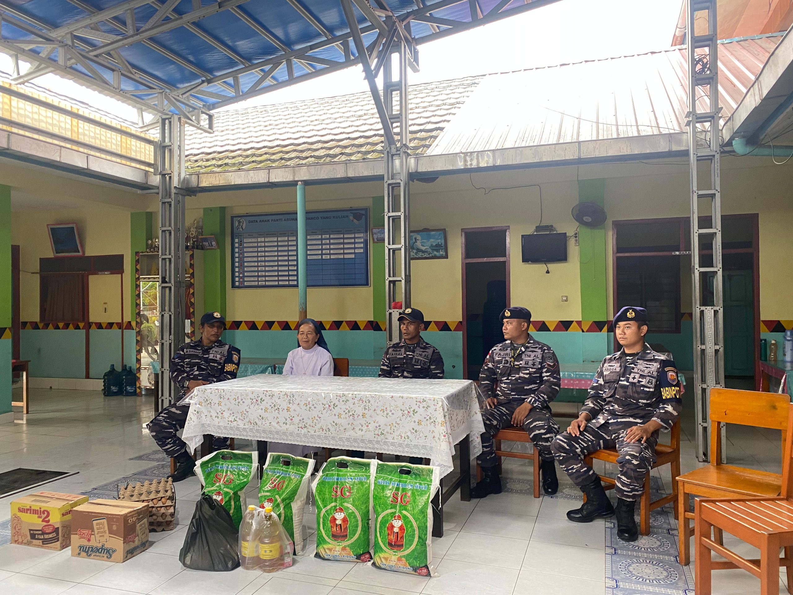 Wujud Kepedulian Sosial, Prajurit Posal Gunungsitoli Lanal Nias Berikanl Bantuan Sembako Kepada Panti Asuhan Monaco
