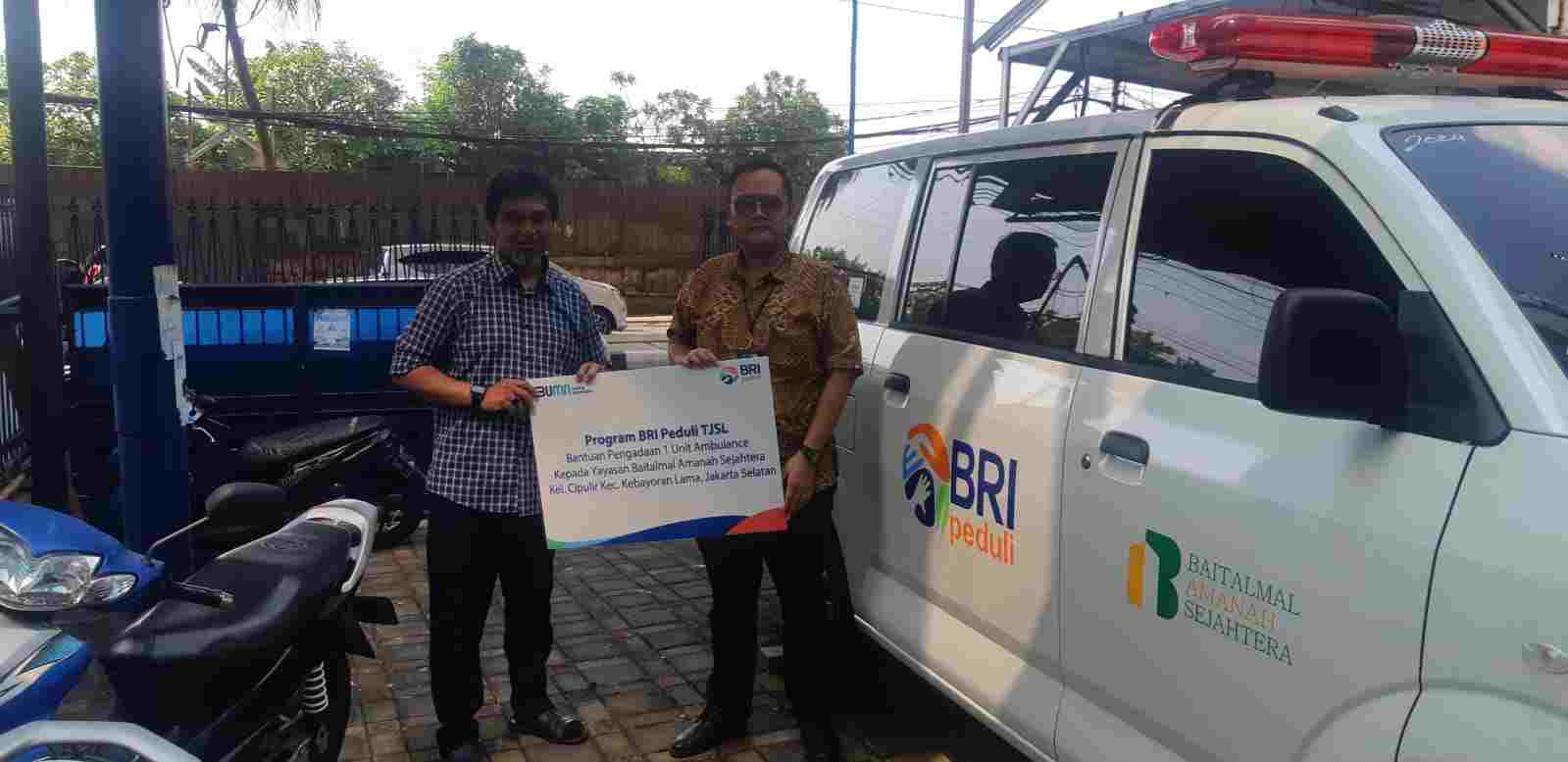 Yayasan Baitalmal Amanah Sejahtera terima CSR dari Bank BRI Kebayoran Baru berupa satu unit mobil ambulance yang diperuntukkan untuk masyarakat sekitar melalui Yayasan Baitalmal Amanah Sejahtera.