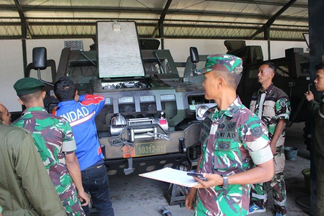 Beberapa kendaraan taktis Komodo yang mengalami kerusakan diperiksa dan data secara visual oleh Tim Rikmat.