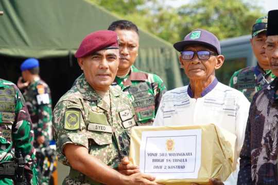 Meski terbiasa dengan disiplin dan ketegasan di medan latihan, para prajurit menunjukkan sisi lain dari jiwa keprajuritan: kepedulian dan kasih sayang kepada sesama. Dengan senyum tulus dan tangan terbuka, mereka menyapa warga, menyerahkan paket Sembako dan berbincang hangat dengan masyarakat setempat.