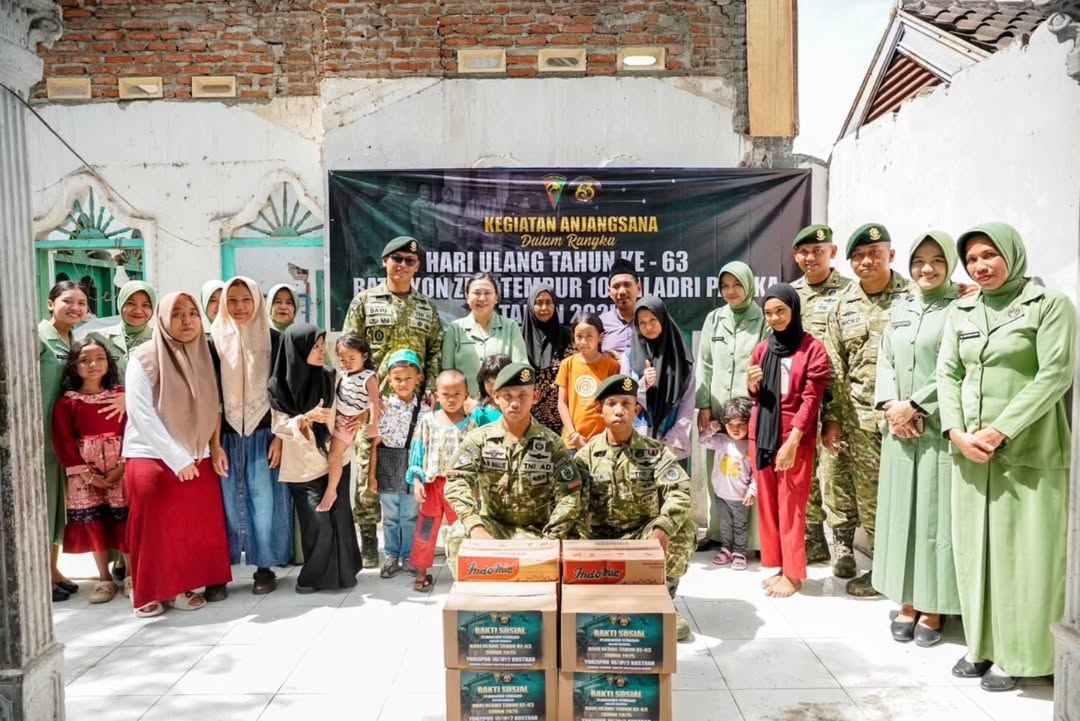 Batalyon Zeni Tempur 10/JP/2 kostrad melaksanakan Kegiatan Anjangsana dan Bakti Sosial kepada Masyarakat kurang mampu dalam rangka HUT Batalyon Zeni Tempur10/JP/2 Kostrad yang Ke-63 tahun bertempat di Kota Pasuruan. (9/5/2025).